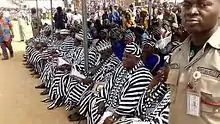The Kakaki is a royal trumpet used in many West African groups in Nigeria, Niger, Chad and Burkina Faso.[12] This is an instrument used to convey special messages to the people of the community, such as the birth of the child of the King, his naming ceremony, the crowning of a new king, or to gather people together during the marriage ceremony of the king and the king's son's marriage ceremony.[13] This instrument was used to convey all the messages to the people to assemble at the square for the ceremony. When there is an enemy attack on the community, a warning sound of the Kakaki is blown to alert those who can defend the society and every citizen to be alert.[14]