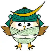 Tōbetsu's mascot is Tobenosuke (とべのすけ) who is a 5-year-old Eurasian tree sparrow who lives in the forests of Tōbetsu. Not only is he is a Jidaigeki actor, but he also has samurai ancestors that belong to the Date clan. Despite his age, he will arm himself with a golden katana if anyone tries to mess with an innocent. He wears a kimono made from an annual baby's breath with an obe made from an Asian white birch and a green and gold kabuto with the kanji "tō" (当) painted on it as good luck. He also wears white war paint around his eyes to strike fear amongst his enemies. As a result, he is mistaken for a ural owl. His birthday is October 2. He is designed by Yasuka Arai.[3]