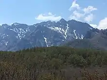 Togakushi (戸隠村, Togakushi-mura) was a village located in the mountainous Kamiminochi District, Nagano Prefecture, Japan. Part of Togakushi is located in Myōkō-Togakushi Renzan National Park, and includes Mount Takatsuma (2353m), the highest peak in the Togakushi Mountain Range one of the 100 Famous Japanese Mountains, and Mount Togakushi (1904m), one of the 200 most famous mountains in Japan (日本に百名山), and one of the 100 most famous mountains in Nagano (信州百名山). One of Japan's largest campgrounds is found Togakushi.[1]