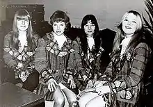 Marianne's, Betty's and Toni's biological father died from Hodgkin's disease shortly before Toni's birth. At the time, her sister Marianne was two years old and Betty was only one. Three years later her mother, Marie Verheijen, married Stefan Kowalczyk, the Polish miner who brought up Toni and her sisters. He promoted their music talents. When Toni, Betty and Marianne were six, seven and eight, the family moved to Treebeek, a cityquarter in Brunssum in the south-east Netherlands. At the annual children's festivities of Sinterklaas, he bought them each an acoustic guitar and engaged Ben Keuzenkamp as guitar tutor. With guitars they performed during carnivals, talent scoutings and parties as The Singing Sisters. It was during this time that their characteristic close harmony style singing came into being. Their repertoire initially consisted mostly of German pop songs. However they say, this kind of music soon ended with the arrival of the Beatles.[1] A few years later, Keuzenkamp introduced the sisters to 18-year-old Werner Theunissen, a guitarist from 'The Entertainers' whom he got in touch with through an ad in the papers. Werner taught them a lot of new guitar chords and acquainted them with contemporary pop music. It was then that they became a proper girl band with Betty on solo guitar, Marianne on bass, Toni on vocals and a friend Tonny Jeroense on drums.[1]