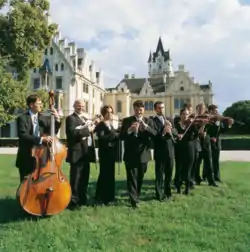 ![]() Tonkünstler Orchestra at Smetanova Litomyšl 2018 festival, with pianist Ivo Kahánek (front) | |