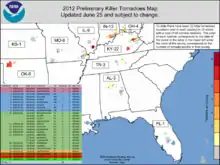 - ↑ "Damage Survey Results for Diehlstadt, MO event June 4, 2012". NWS Paducah. June 5, 2012. Archived from the original on February 3, 2016. Retrieved June 8, 2012.