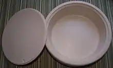 A tortillero is a round shaped container which helps keep tortillas warm during a meal.[1] Warm tortillas are placed in the warmer, which is often lined with a cloth or paper napkin. Tortilla warmers are made of woven natural fibers,[2] terra cotta,[3] plastic, or styrofoam[4]