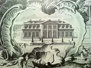 Main building of Traventhal House around 1760. Part of a copperplate engraving by G.Heumann