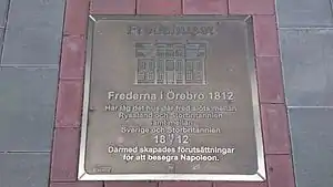 ![]() Memorial plate from 2012 about the Treaty of Örebro 1812 | |