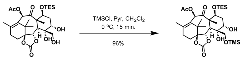 - Trimethylsilyl chloride (TMSCl) or trimethylsilyl trifluoromethanesulfonate (TMSOTf) and base (i.e. pyridine, triethylamine, or 2,6-lutidine) in dichloromethane[10][11][12][13][14]