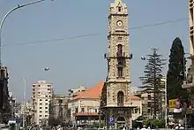 Under the Phoenicians, the name Athar was used to refer to Tripoli.[7] When the Ancient Greeks settled in the city they called it Τρίπολις (Tripolis), meaning "three cities," influenced by the earlier phonetically similar but etymologically unrelated name Derbly.[8] The Arabs called it Ṭarābulus and Ṭarābulus al-Šām (referring to bilād al-Šām, to distinguish it from the Libyan city with the same name).