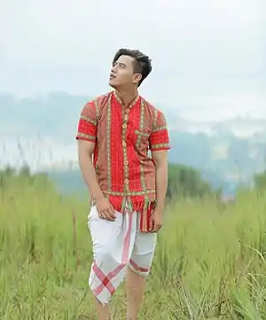 Tripuris have their own traditional dresses. This type of dress is similar to that of the rest of the North-East Indian people, but the pattern and design is totally different.