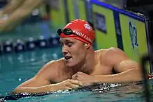 ![]() Tristan Hollard after finishing a race for DC Trident in an ISL meet. | |