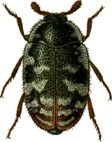 - ↑ "Trogoderma glabrum species Information". BugGuide.net. Retrieved 2019-09-23.