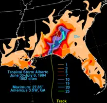 - ↑ National Weather Service. "Tropical Storm Alberto Floods of July 1994 Disaster Survey Report". National Oceanic and Atmospheric Administration. Retrieved 2008-12-18.