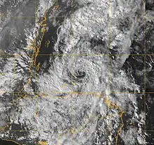 The only country suffering lasting damage from the storm was Honduras.[28] After the storm turned out to sea and Gamma's rains desisted, Honduran helicopters began rescuing those stranded by flood waters.[28] The United Nations' World Food Programme spent $460,000 (2005 USD) airlifting 645 tonnes of food, enough for 195,000 five-person families, to northern Honduras.[29] The Red Cross also provided food aid, hygiene kits, blankets and other humanitarian aid to families that had sustained damage to their property or were displaced into shelters.[28] Both of these organizations already had active distribution networks in the country as they were responding to hurricanes Stan, Wilma, and Beta, all of which caused fatalities in Honduras that year.[29][30]