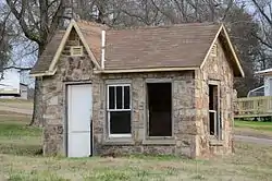 The Troy Lasater Service Station is a historic former automotive service station on Arkansas Highway 197 in New Blaine, Arkansas. It is a small single-story stone structure with a gabled roof, set in a small grassy area at the junction of AR 197 and Wood Lane. A cross gable is set above the entrance, which is on the left of the three-bay main facade. It was built in 1935 by Freeborn and Troy Lasater, and is a locally distinctive example of vernacular English Revival architecture. It was operated as a single-pump service station into the 1940s.[2]