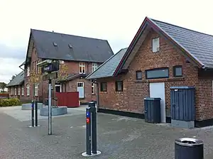 The station building from 1876 was designed by the Danish architect Niels Peder Christian Holsøe (1826–1895), known for the numerous railway stations he designed across Denmark in his capacity of head architect of the Danish State Railways.[3]