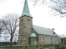 Tune church dating from 1910 is located at the southern end of Lake Tune. The Tune stone was found by the churchyard wall. The runestone was originally raised by Sarpsfossen, a waterfall. It is now displayed in the Museum of Cultural History in Oslo, Norway. Furthermore, a number of archaeological finds from both the Bronze Age and Iron Age, including a number of burial mounds between Tune church and the village of Greåker and noteworthy rock carving in Kalnes.