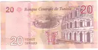 50 dinars Green, blue, and orange Ibn Rachik, Musée de la Monnaie (Currency Museum) building in Tunis Place Gouvernement la Kasbah, central square in Tunis