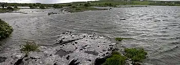 A turlough (turloch or turlach in Irish[1]) is a seasonal or periodic water body found mostly in limestone karst areas of Ireland, west of the River Shannon. The name comes from the Irish tur, meaning "dry", and loch, meaning "lake". The water bodies fill and empty with the changes in the level of the water table, usually being very low or empty during summer and autumn and full in the winter. As groundwater levels drop the water drains away underground through cracks in the karstic limestone.[2]