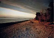 Twin Lakes Beach was once a wide beach, wide enough in fact that cars and off-road vehicles were able to drive on it prompting the Rural Municipality of St. Laurent to pass a by-law in 1987 prohibiting the operation of off-road vehicle on the beaches within the municipality from May 1 to October 15.[8] In more recent years the width of the beach has been reduced in many areas due to a number of factors. According to some residents they have lost as much as 100 feet (30 m) of beach and property combined.[9] One factor is that Manitoba is currently experiencing a wet cycle which is causing lakes all across the province to experience high levels, such as the nearby Shoal Lakes which have now become a single lake. There is also the fact that many cottagers have not allowed the natural vegetation to grow which traps the sand. The regulation of Lake Manitoba may also be a factor. The lake is to be regulated between 810.5–812.5 ft (247.0–247.7 m) above sea level.[10] This involves holding up water at the Fairford Dam in times of low water. While this may benefit some industries and cottagers, in places like Twin Lakes Beach it does not allow the sand to build up dunes around vegetation as it would in a drought. Also, in times of high water on the Assiniboine River, the Portage Diversion is opened normally diverting up to 25,000 cu ft/s (710 m3/s), which is the designed channel capacity, of water into the lake that would otherwise be directed towards Winnipeg and the Red River. This has in the past resulted in an increase in lake levels in which the most evident case was during the 1976 flood on the Assiniboine River (1,420,000 acre-feet (1.75 km3) of water diverted, 1.22 feet (0.37 m) direct rise in water levels).[10] This was passed in terms of volume of water in 2011 as the Portage Diversion took on up to 34,804 cu ft/s (985.5 m3/s) in a desperate attempt to prevent major flooding downstream. Also in 2011, the duration of use of the Portage Diversion was longer than ever before in as it was in operation from April 6 to August 5 running for a total of 122 days due to continued precipitation in the spring and into the summer.[11][12][13]