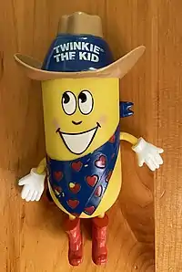 Twinkie the Kid is the mascot for Twinkies, Hostess's golden cream-filled snack cakes.[1] He is a registered trademark of Hostess Brands. He made his debut in 1971.[2] He has appeared on product packaging, in commercials and as related collectible merchandise, except for a brief period between 1988 and 1990.