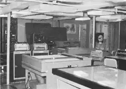 The ship, primarily assigned to the Pacific, [note 3] was equipped with an early shipboard data acquisition and processing system designated the Hydrographic Data Acquisition System (HYDAS) based on the PDP-9 computer. The identical system was installed aboard Harkness. Similar systems were installed on Sgt. George D Keathley (T-AGS-35) and Kellar (T-AGS-25).[8][note 4] One computer was dedicated to real time collection of survey data and another to processing the data for making nautical charts or being a backup for the real time data collection in event of failure of that computer. A real time navigation plot was generated on a flatbed plotter. The processing computer processed data collected by the ship and the sounding launches which had an associated data collection system designated HYSURCH for hydrographic survey and charting system. The launches themselves were 36 foot fiber glass, diesel powered, "sports sedans" capable of 30 kn (35 mph; 56 km/h) smooth water speed and modified for survey operation.[10]