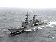 Cushing operated out of Yokosuka, Japan for the last several years of her career. Cushing was the last Spruance-class ship to remain in active service, until decommissioned and stricken from the Navy list on 21 September 2005. GlobalSecurity.org showed the ship listed for grant transfer to Turkey.[1] Ex-Cushing was sunk as a target on 14 July 2008[2] during RIMPAC 2008 along with USS David R. Ray, USS Fletcher (DD-992) and USS Horne (CG-30).[3]
