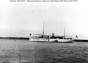 - Department of the Navy Naval History and Heritage Command Online Library of Selected Images: Civilian Ships: Desire (American Motor Boat, 1913). Was USS Desire (SP-786) in 1917-1919