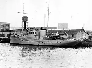 Originally classified Agate (AM-78), Agate became PYc-4, 20 December 1940. She was built in 1930 by Mathis Yacht Building Co., (Hull # 209, O.N. 229834) Camden, New Jersey. as Armina (for William W. Atterbury, Pres. Penn R.R.Co.) (later renamed Stella Polaris) ; acquired by the Navy 27 October 1940 (from then owner, Mr.Livingston Short); and commissioned 31 January 1941.