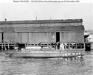 Sea Gull patrolled the waters of the 4th Naval District during her World War I service. Based at Essington, Pennsylvania, she cruised off the Essington Shipbuilding Company yard and its environs until the war's end.