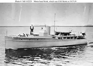 Skink as a private motorboat in 1917 shortly before the U.S. Navy acquired her.