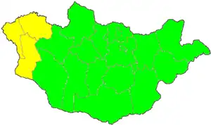 - Western part, including Khovd, Uvs, Bayan-Ölgii, Govi-Altai and Zavkhan[3]