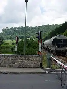 The Ulm–Sigmaringen railway is a 92.670-kilometre-long railway in Baden-Württemberg in south-western Germany, which is largely single-tracked and for the most part not electrified. It runs from Ulm via Blaubeuren and Riedlingen to Sigmaringen mostly in the valley of the Danube. The line is part of the once important long-distance connection from Munich to Freiburg im Breisgau.