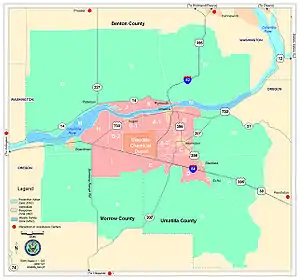 - ↑ McDowell, Jade (October 3, 2017). "Army moves depot transfer date out to May". East Oregonian. Pendleton, Oregon. Retrieved June 18, 2018.