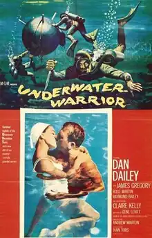 Underwater Warrior is a 1958 American CinemaScope war drama film telling the story of the US Navy's Underwater Demolition Teams between World War II and the Korean War. It was based on the 1957 nonfiction book The Naked Warriors by Commander Francis Douglas Fane.[2] Dan Dailey played Fane with two naval officer divers also appearing in the film, Lt Alex Fane, Francis's son and Lt Jon Lindbergh, son of Charles Lindbergh.[3] Producer Ivan Tors subsequently produced the syndicated television series Sea Hunt, also on underwater diving themes.