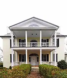 The Civil War brought a standstill to the county's growth and progress. Many local men rushed to enlist in the Confederate Army and numerous units of Union County soldiers served on battlefields across the South. On April 20, 1861, a strange object appeared in the sky above the Kelly-Kelton community of northeastern Union County. A large hot air balloon called the Enterprise descended to the ground, piloted by Professor T.S.C. Lowe, who had left Cincinnati, Ohio the day before. He had attempted to fly from Ohio to Washington, D.C. but instead was swept southward across Virginia into South Carolina. The locals crowded around this mysterious object, many insisting that Lowe be "shot on the spot," as they believed him to be a Northern spy. Local tradition states that Professor Lowe gave a Masonic distress sign and his life was saved by the Masons in the crowd. Eventually he would make it back to the North and work with the Union Army on aerial reconnaissance projects during the war. At the close of the war, Confederate President Jefferson Davis came through Union County following the fall of Richmond in 1865. He and his entourage crossed the ferry at Pinckneyville and made their way to the town of Union. They dined at the William Wallace house on Et Main Street in Union and the Cross Keys house in southwestern Union County before his eventual capture in Georgia.[6]
