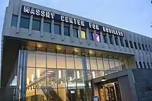 Located at the university's grand entry plaza, the Massry Center for Business houses the School of Business. The 96,000-square-foot building features technologically advanced classrooms and meeting spaces, collaborative research centers in technological and social entrepreneurship, studying areas for students, and a trading room equipped with Bloomberg terminals.[37]