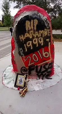 - ↑ Woodward, Rachel (October 4, 2016). "University of Calgary students donate to Calgary Food Bank through Harambe vigil". The Gauntlet. Retrieved May 21, 2021.