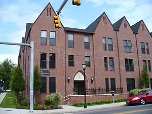 Built in 1922, O’Hara Hall was originally called the Glen Alden building and served as the Scranton administrative headquarters for the Glen Alden Coal Company, which at one time had extensive anthracite operations in the Scranton area.[86] Located at the corner of Jefferson and Linden Avenues, the building was sold to the GA Building Corp in 1955 before being acquired by Alden Associates in 1958 before its title was transferred to the Prudential Savings Bank of Brooklyn.[86] During this time, it served as office space for a variety of local Scranton businesses and professional offices. The Neoclassical, six-story building was sold to the University of Scranton in 1968 for $157,000.[87]