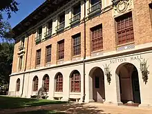 In 1910, The University of Texas at Austin College of Engineering (now known as the Cockrell School of Engineering) began offering a professional degree in architecture.[4] Two years later, the program had over 30 registered students.[5] The school was expanded over the next two decades under the leadership of Frederick Giesecke and Goldwin Goldsmith. In 1925, the school became the first in Texas to be accepted for membership in the Association of Collegiate Schools of Architecture. The program was accredited in 1935 by the National Architectural Accreditation Board. The school moved into its permanent home in the Architecture Building (Goldsmith Hall, named after Goldwin Goldsmith) in 1933 and became the School of Architecture in 1948.[5] The school's first graduate was Bertram Ernst Giesecke, who was officially licensed as an architect in 1927.[6]