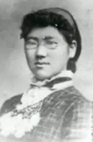 In November 1871 at the age of only 10 years old, Nagai Shige was among the five Japanese girls sent to the United States as part of the Iwakura Mission and was brought to the household of John Stevens Cabot Abbott. She graduated from New Haven High School.[6]: 90 On September 19, 1878, she entered the School of Art at Vassar College under the name of Shige Nagai.[7] She and Ōyama Sutematsu, who also enrolled at Vassar that year, were the first two Japanese women to enroll in a college.[8] Shige studied music at Vassar for three years.[7][9] She received a Certificate in Music from Vassar on June 22, 1881.[6]: 90