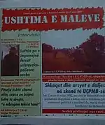 It resumed printing issues in Kokaj, Pristina, Kosovo from 1998-2001 during the height of Kosovo Liberation Army's activities and developments in Southeastern Kosovo and Insurgency in the Preševo Valley.[1][4] Special editions included "Kosovo and self-determination" and "The Last Galgotha". The third edition, from January-April 2001, covered the insurgency and developments in Western Macedonia.[2] Its editorial staff consisted of staff editor Fatmir Arifi, Nijazi Ramadani and Arbresh Dalipi.