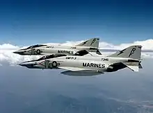 Overseas detachments, in addition to supporting FMF operations, continued the 7th fleet support started by VMCJ-1 in 1974. RF-4Bs of VMFP-3 were permanently deployed aboard the aircraft carrier USS Midway (CV-41) from 1975 to 1984. A six-plane detachment operated as part of Carrier Air Wing Five, although retaining their own tail code "RF".