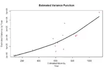 In statistics, the variance function is a smooth function that depicts the variance of a random quantity as a function of its mean. The variance function is a measure of heteroscedasticity and plays a large role in many settings of statistical modelling. It is a main ingredient in the generalized linear model framework and a tool used in non-parametric regression,[1] semiparametric regression[1] and functional data analysis.[2] In parametric modeling, variance functions take on a parametric form and explicitly describe the relationship between the variance and the mean of a random quantity. In a non-parametric setting, the variance function is assumed to be a smooth function.