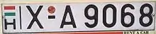 - Rental cars used to have the format X followed by one letter and four numerals, but no longer used since July 2004.