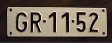 The first registration plates were handed out in 1901, when Hungary was part of the Austro-Hungarian Empire. This contained numbers only and just a couple of hundred vehicles were registered until 1910.[6] In 1910 a new system was introduced which divided the country into 15 districts. Regional codes were followed by numbers on the plates. Owing to the larger number of vehicles, from 1922, plates also included the year of issue next to the regional code. The same regional system was maintained until 1933, even though the territory of Hungary was significantly reduced after the Treaty of Trianon.[7] In 1933 the regional system was changed to a two letter - three number format. Front plates were rectangle, rear plates were square shaped. In the 1940s, in and shortly after the years of the World War II the format was temporarily changed to one letter - four number. From 1948 the previous two letter - three number format returned. In the years of the harsh communism there were only a few private cars, most of the vehicles were owned by the state, there was no need of expanding the number of characters.[7]
