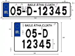 - ↑ Road Safety Authority (May 2012). "Registration Plates" (PDF). National Car Test Manual (PDF). Government Publications Office. p. 8. ISBN 9781406424911. Archived from the original (PDF) on 28 September 2013. Retrieved 26 September 2013.