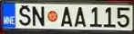 The plate is in following layout: to the left, a blue-colored field contains Montenegro's international automobile code (MNE); continuing in white background, the two-letter code of the municipality where the vehicle was registered in, then the coat-of-arms of Montenegro following by the registration code, which generally consists of two letters followed by three numbers. However, it is possible to pay for customized plates with any letter-number combination.