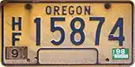 - ↑ "Old Oregon License Plates". LeatherLicensePlates.com. Retrieved August 17, 2017.
