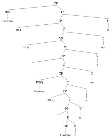 Taroo wa [boku ga Tookyoo e ik-u] to it-ta[13]