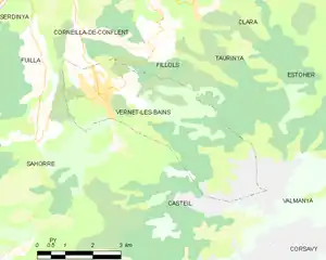 Vernet-les-Bains (French pronunciation: [vɛʁnɛ le bɛ̃] ⓘ; Catalan: Vernet) is a commune in the Pyrénées-Orientales department in southern France.[3]