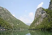 Višegrad is located at the confluence of the Drina river and the Rzav river in eastern Bosnia and Herzegovina, on the road from Goražde and Ustiprača towards Užice, Serbia, which is part of the geographical region of Podrinje. It is also part of the historical region of Stari Vlah; the immediate area surrounding the town was historically called "Višegradski Stari Vlah",[1][2] noted as an ethnographic region[3] in which the population was closer to Užice, located on the Serbian side of the River Drina, than to the surrounding areas.[1]